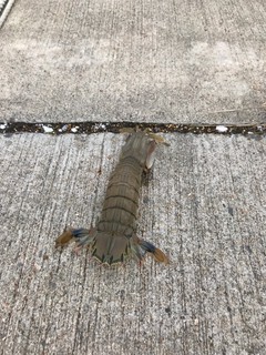 私と息子は塩釜の漁港の岸壁で釣りと芋煮を楽しませてもらいました。そこで、会社の後輩が見事シャコエビを釣りあげました。甲殻類好きの息子は大興奮です。