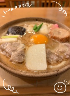 写真は、ウィンターシーズン限定の「味噌鍋焼きうどん」。毎年食べたくなる味、今年も無事に食べに行けました!具だくさんで、写真ではわかりづらいですがとろとろのお餅も入っています。食べ応え十分。味噌スープの味も絶妙で、美味しいんですよ~!スープは全部飲み干しました(笑)外の気温は氷点下でしたが、体の内側からポカポカにあったまりました?